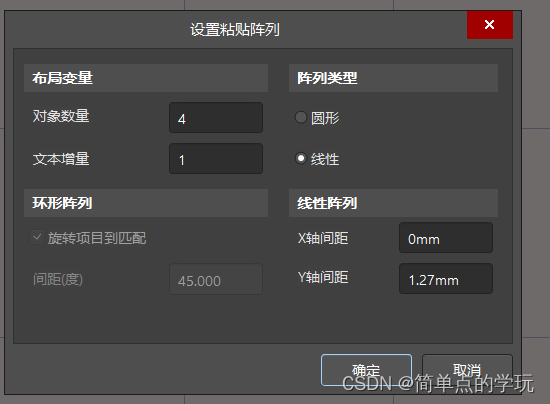 步骤:先复制一下焊盘-激活特殊粘贴功能、选择粘贴阵列功能、选择好个数和焊盘之间的距离