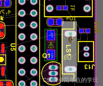紫色部分就是阻焊部分,阻焊作用:防止绿油覆盖