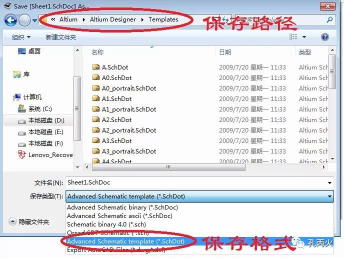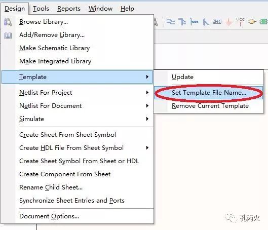 (2)可以为单个原理图文件单独更新模板,孔丙火(微信公众号:孔丙火)认为,这种方法更灵活,方法如图10-13所示。