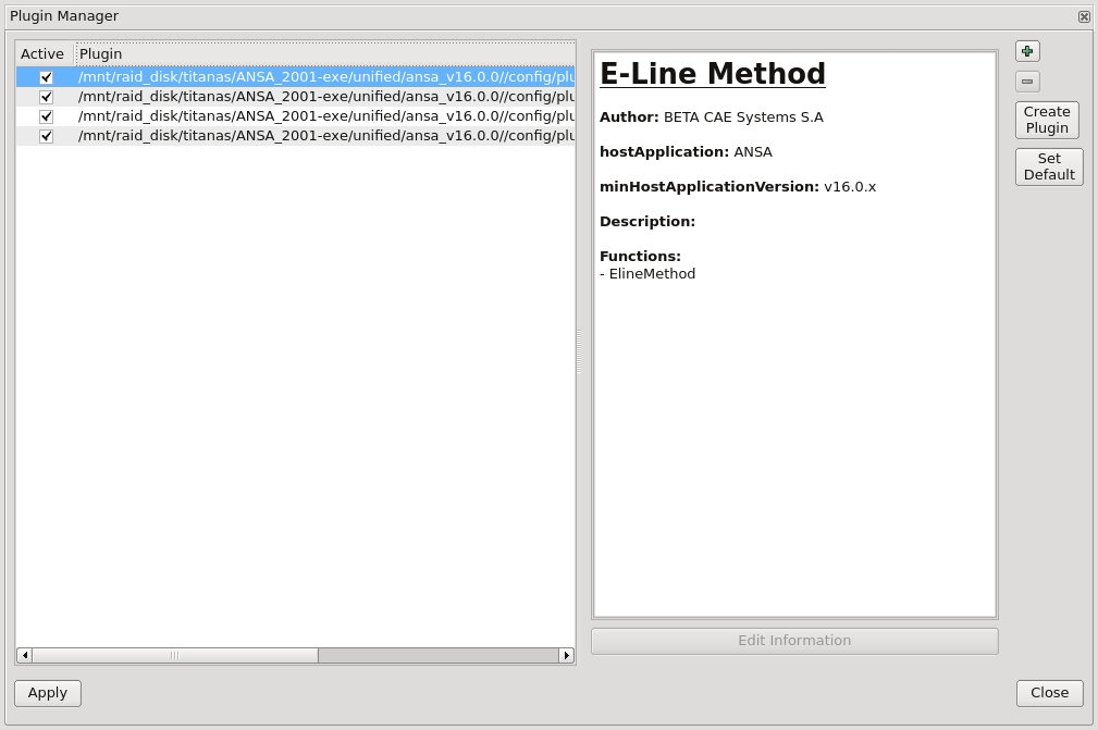 注意: 在插件管理器中的任何时刻的操作变化,用户都应该保存ANSA GUI设置并重启ANSA才能生效。