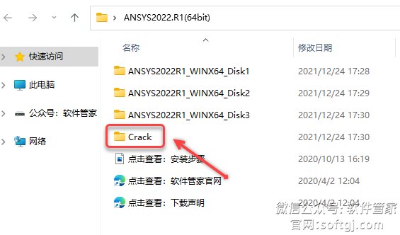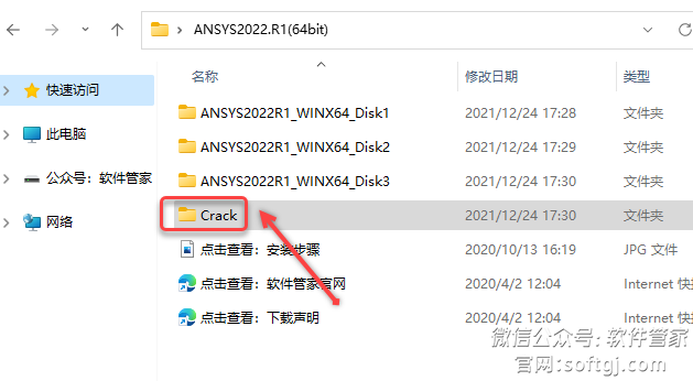 26.打开安装包解压后的【ANSYS2022.R1(64bit)】文件夹,双击打开【Crack】文件夹。
