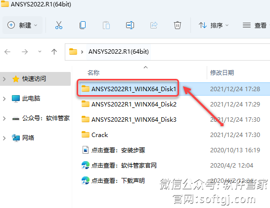 2.打开解压后的文件夹,双击打开【ANSYS2022R1_WINX64_Disk1】文件夹。