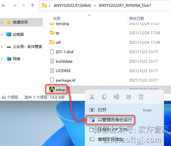 3.鼠标右击【setup】选择【以管理员身份运行】。