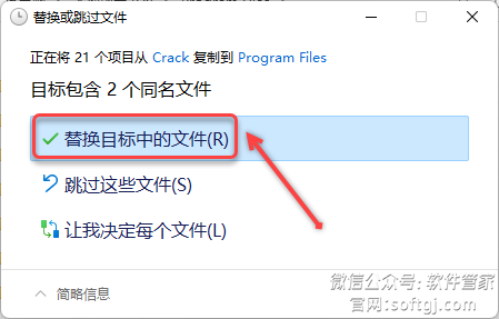 22.点击【替换目标中的文件】。