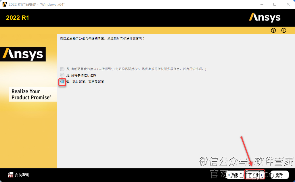 9.选择【否,跳过配置……】,点击【下一个】。