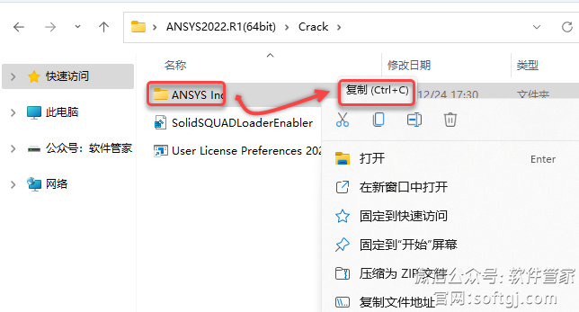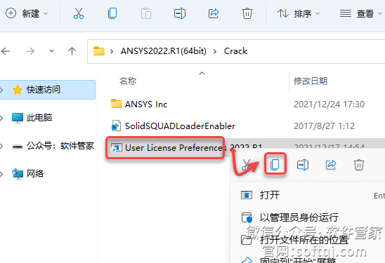 30.回到【Crack】文件夹,鼠标右击【User License Preferences 2022 R1】选择【复制】。
