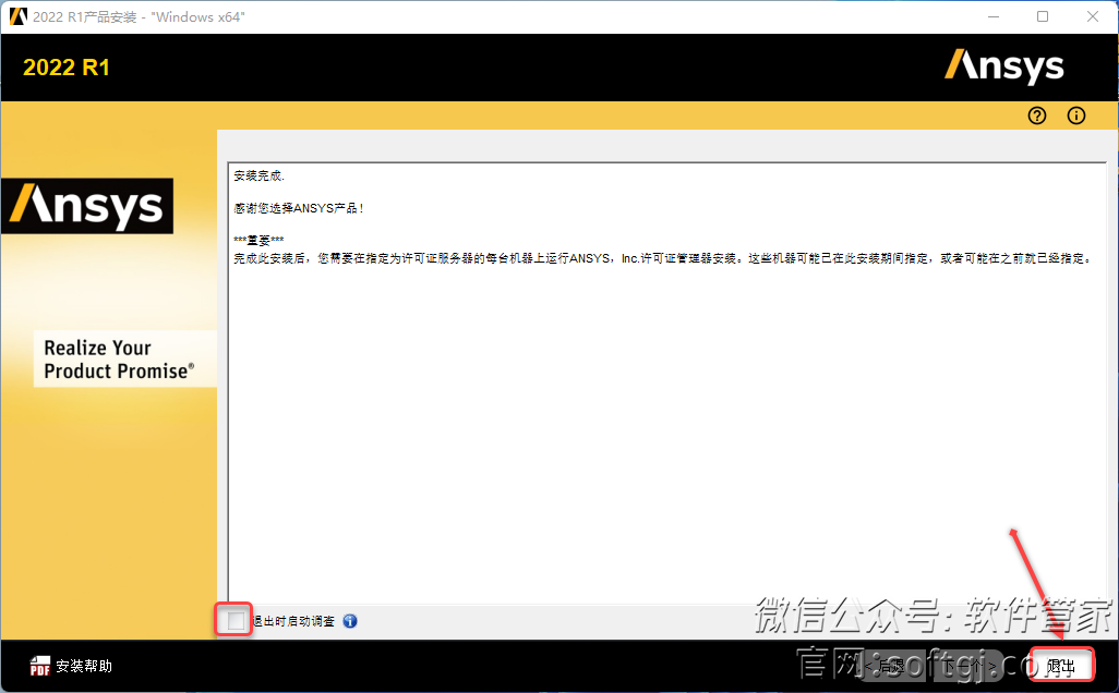 17.取消勾选【退出时启动调查】,点击【退出】。