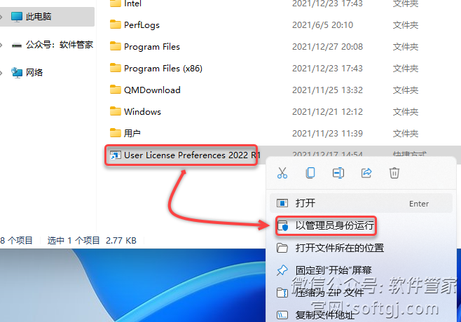 33.鼠标右击粘贴后的【User License Preferences 2022 R1】选择【以管理员身份运行】。
