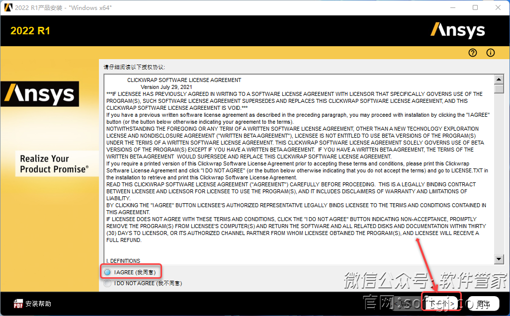 5.选择【I AGREE】,点击【下一个】。