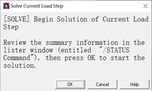 (4)计算,选择Main Menu--Solution--Solve--Current LS--弹出的对话框如下,点OK继续