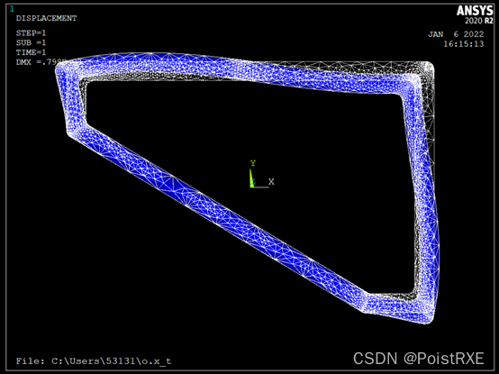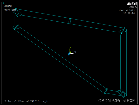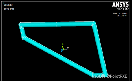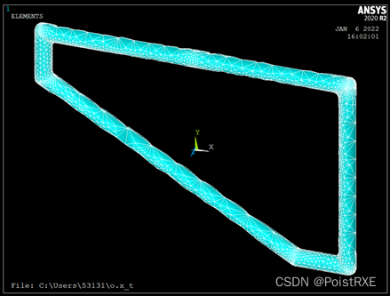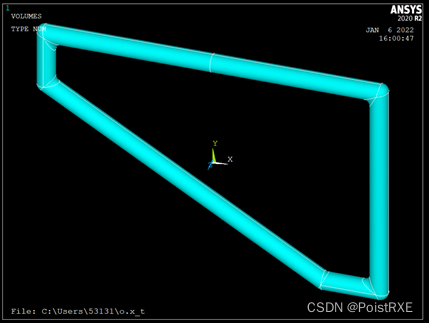 建模使用Soildworks,导出为x_t文件,再将x_t格式的车架导入Ansys中, file --import--PARA--找到格式为x_t的车架文件,文件导入后如下图所示。