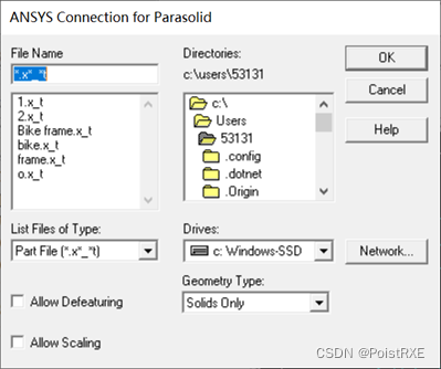 (4)从Solidworks中导入模型,File-Import-Para,选择要导入的模型,点击OK。