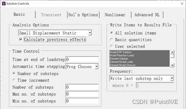 (3)定义求解控制菜单,选择Main Menu--Solution--Analysis Type--Sol’n Controls命令--打开对话框勾选Calculate prestress effects项--OK