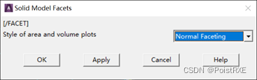 (5)可以看出导入的三维模型在ANSYS中现在还不是正常三维模型的状态,需要对模型面修复重画,使之成为可以用于有限元分析的三维模型。点击PlotCtrls--style--solid model facets然后选normal facet,再replot一下,得到修复后的构建体,修复后的构建体在ANSYS中是三维模型,可以进行有限元分析的预处理。