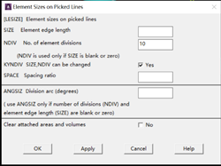 (6)对模型进行体的划分。Main Menu--Preprocessor--Meshing--Mesh Tool--Lines Set--Pick All--NDIV No. of element divisions 设置为10--OK--Mesh--选择实体--OK