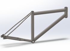 下图为自行车架的三维模型,车架是构成单车的基体,联接着单车的其余各个部件并承受骑者的体重及单车在行驶时经受各种震动和冲击力量,因此除了强度以外还应有足够的刚度,这是为了在各种行驶条件下,使固定在车架上的各机构的相对位置应保持不变,充分发挥各部位的功能。车架分为前部和后部,前部为转向部分,后部为驱动部分,由于受力较大,所有要对后半部分进行加固。