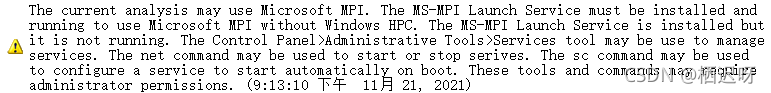同时,用 Microsoft MPI跑仿真时会警报,然后多核仿真报错(时间有点长,就不给图了)。