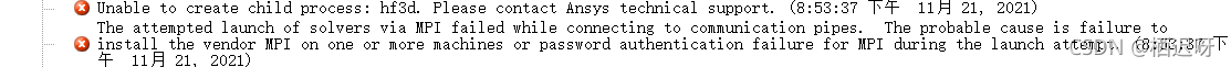 Error:The attempted launch of solvers via MPI failed while connecting to communication pipes. The probable cause is failure to install the vendor MPI on one or more machines or password authentication failure for MPI during the launch attempt.