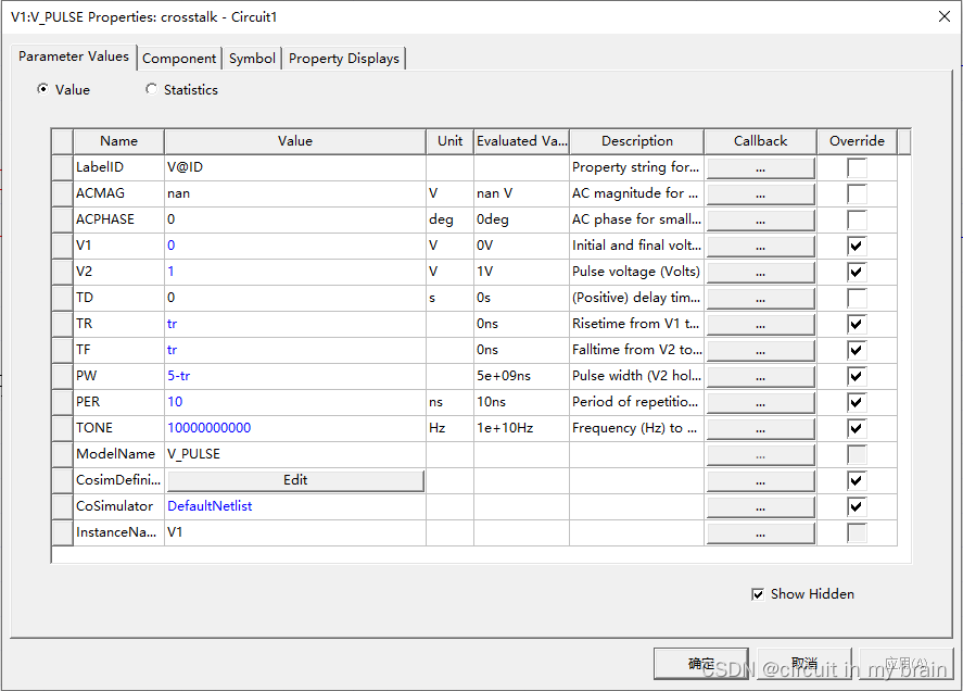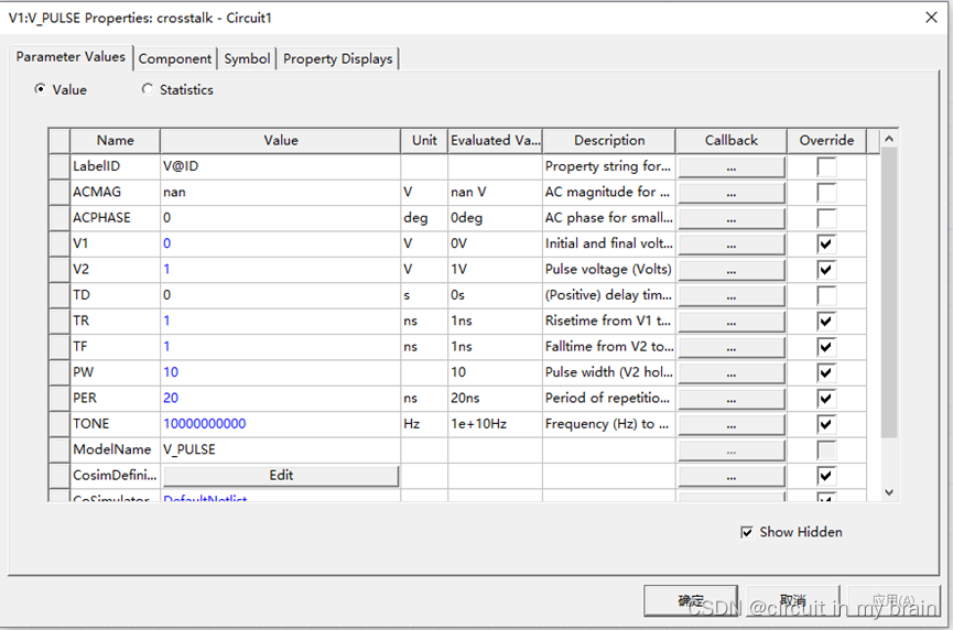 修改信号源V1把上升时间定为1ns,脉宽10ns,周期20ns。