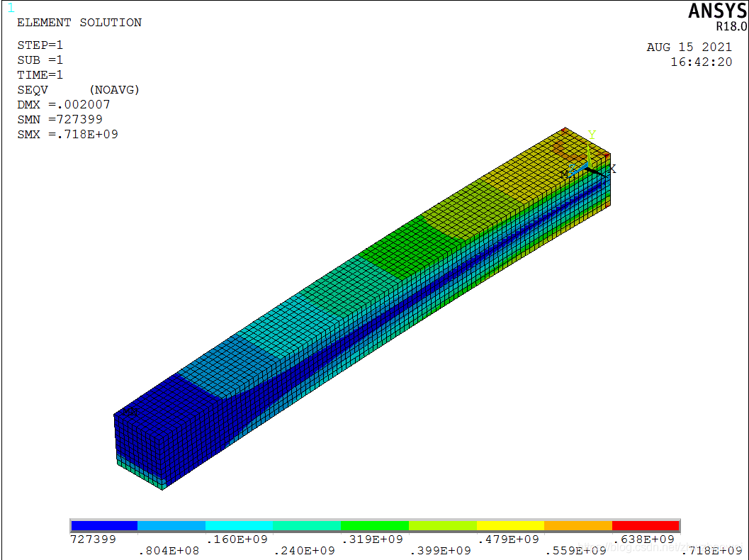 我们从上面列表单元解可以看出单元解也是以节点的形式展示的,185单元有8个节点,所以单元解由8个节点解组成,但是我们实际在上面保存的时候每个单元只保存了一个数值,这个数值其实是这8个单元节点解的平均。