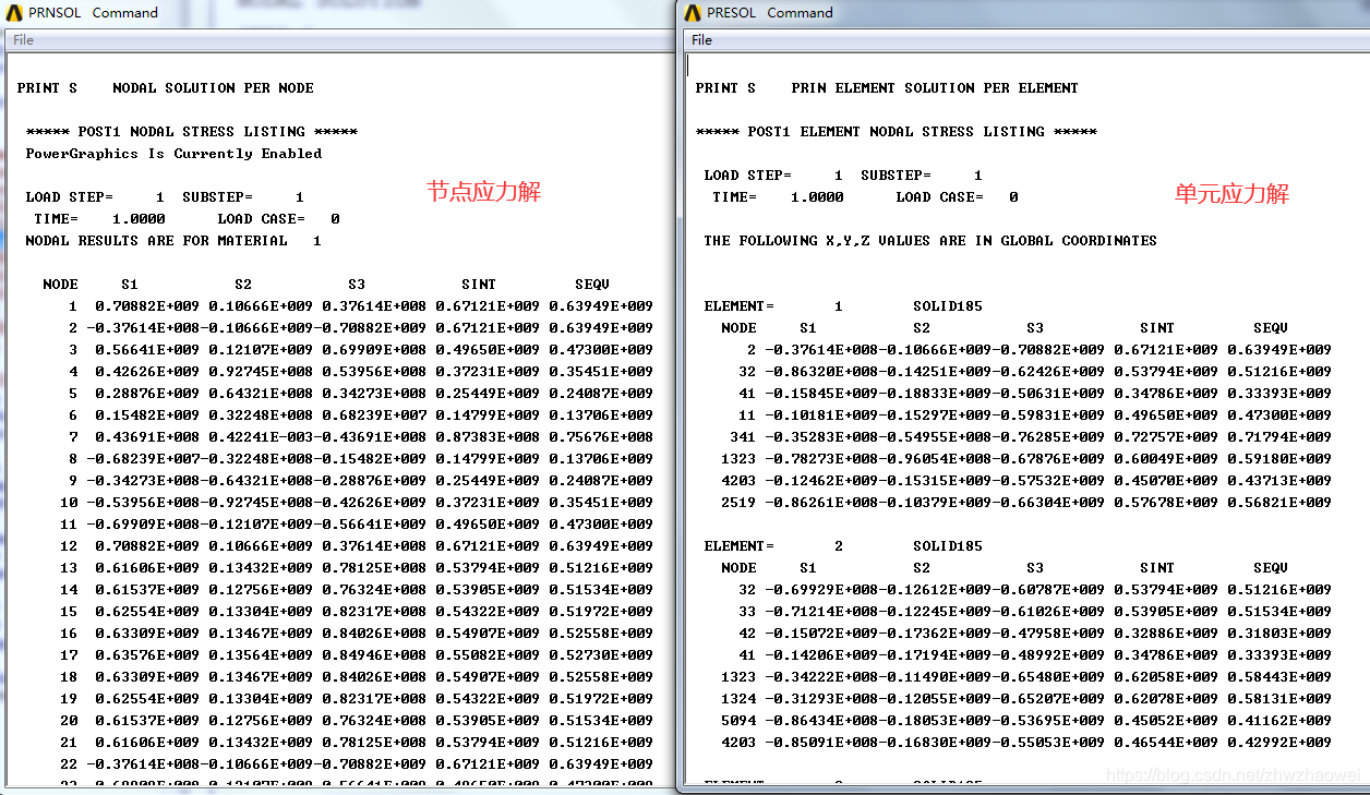保存节点解和单元解,这里以节点应力和单元应力为例,其他解可以参考下面这篇博客APDL获取节点和单元的结果