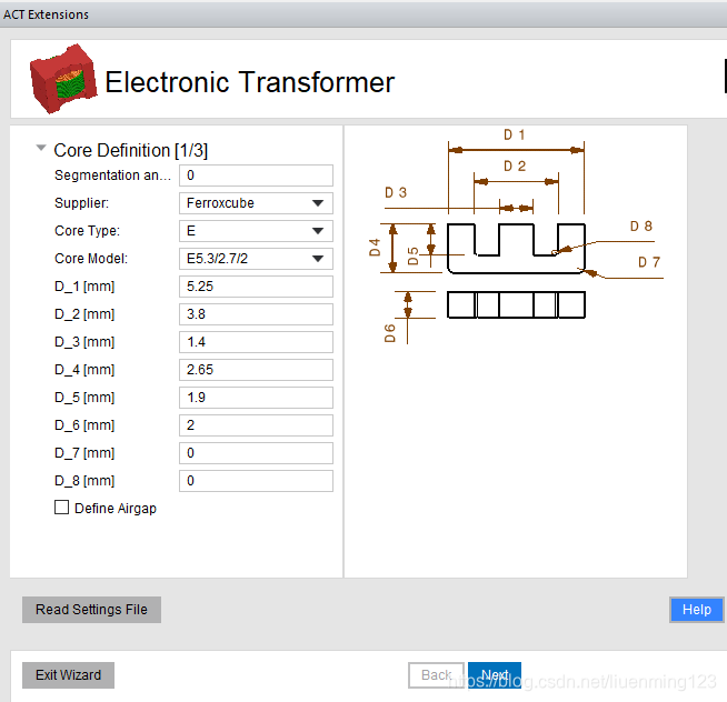 设置磁芯数据,或者导入数据