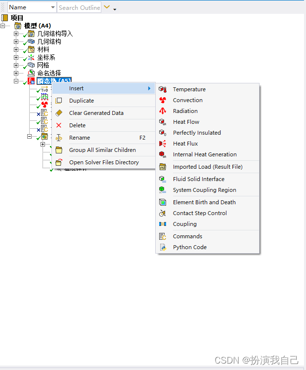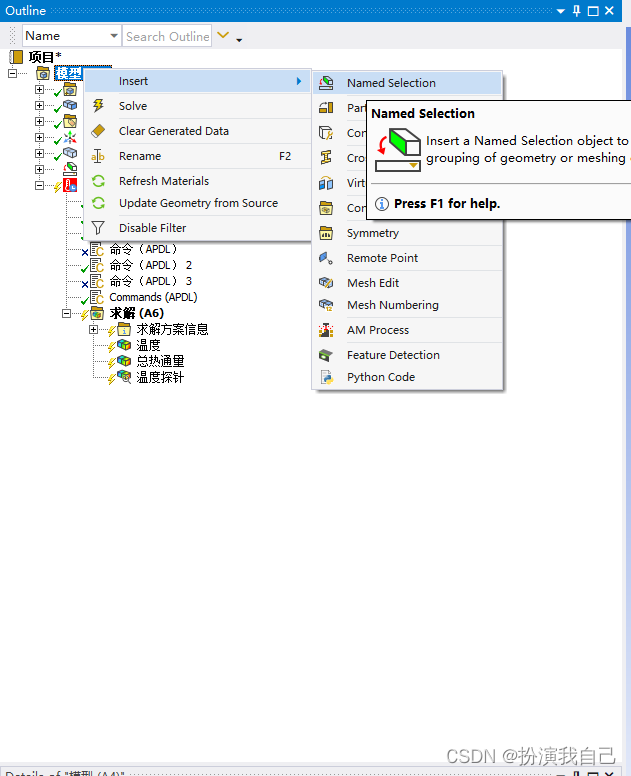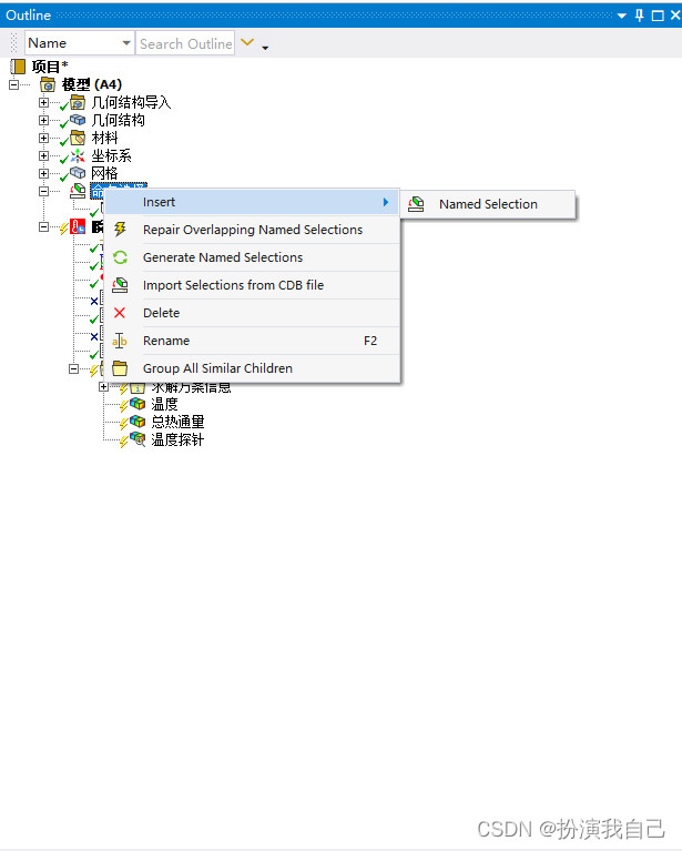 8、在左侧命令框中右键模型,选择 Insert -Named Selection,插入一个命名选择;