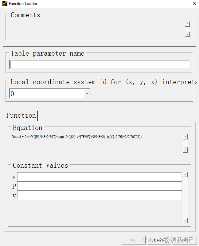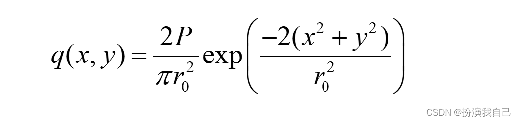 3、在Result=后面的编辑框中输入激光的热流密度函数,本文使用平面圆形高斯分布热源,其热流密度函数如下:
