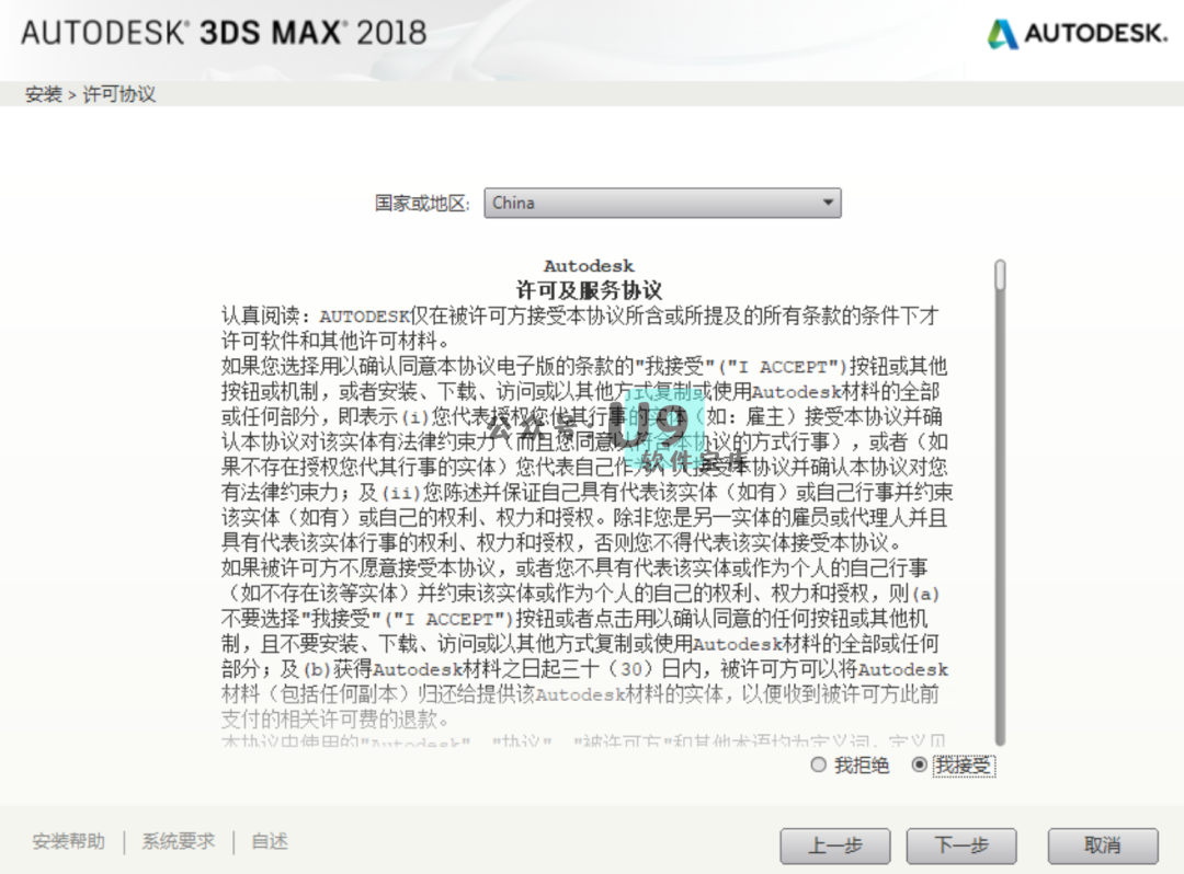 勾选“我接受”,点击“下一步”。
