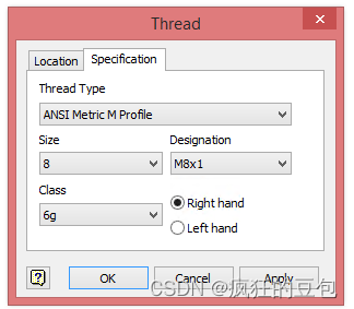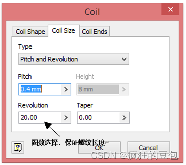 成品如下图,同时对话框中圈数选择,保证螺纹长度。