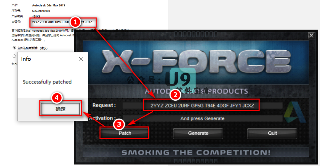 关闭电脑杀毒软件及windows安全中心,然后将注册机压缩包解压后以管理员身份运行64位的注册机,将注册页面的申请号复制到注册机Request后的文本框中,然后点击“Patch”,弹出“Successfully patched”后点击“确定”,弹出“error”的话一般是没有以管理员身份运行注册机。windows安全中心关闭方法参照:Win10如何关闭"windows安全中心"