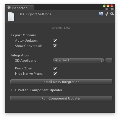 Thanks to Unity’s convenient DCC integration tools (available inside Maya and 3ds Max), a single click reads or writes an FBX file, without the need to navigate complex options or directories. The integration also tracks which objects should be exported for each file, and gives artists an easy way to keep this information up to date using export sets. Our DCC integration tools can be installed from inside the FBX Export Settings.