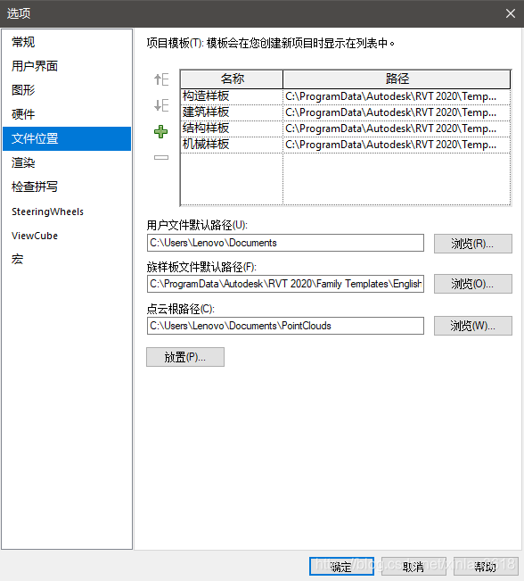 选项中可以设置保存时间,共享更新频率,默认视图规程,用户界面,文件位置, 控制 盘,视图立方体,宏。