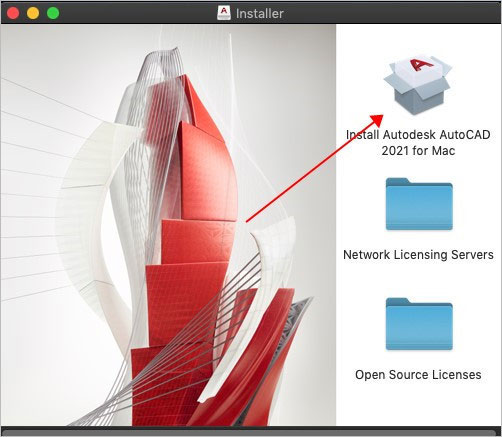 3、再双击运行"Autodesk_AutoCAD_2021_macOS.dmg"文件,得到如图所示的内容,双击Autodesk AutoCAD 2021 for Mac开始安装;
