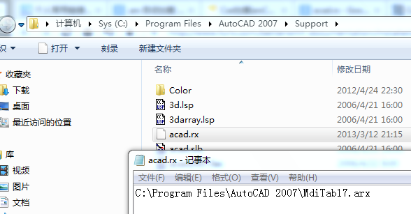 复制下载的文件 MdiTab17.arx到C:\Program Files\AutoCAD **目录下