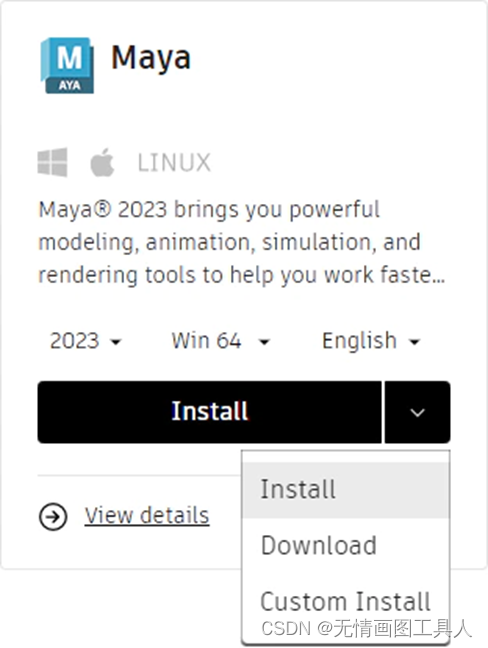 安装:此方法用于在单台计算机上安装 Autodesk 产品,只需一次操作即可完成下载和安装。