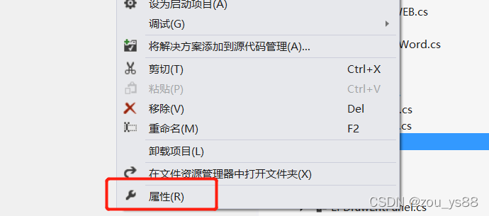 1、在解决方案中项目名称上右键单击,打开项目属性对话框: