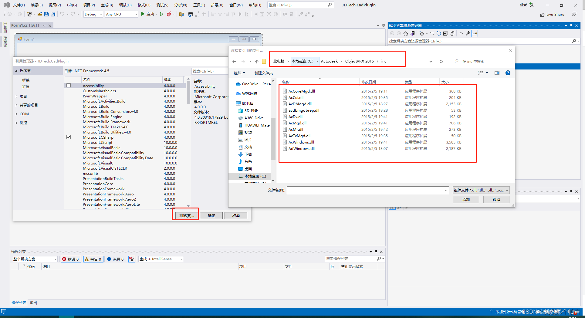 本次环境为CAD2016,Vs为2022。根据CAD版本,对应的是.NET FrameWork 4.5。