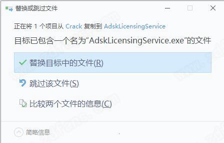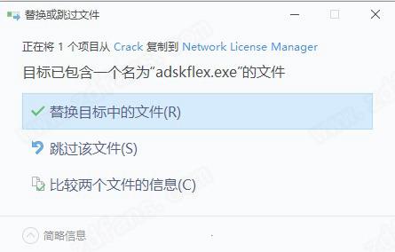 7.将“crack”文件夹中的“adskflex.exe”复制到安装目录中,点击替换目标中的文件