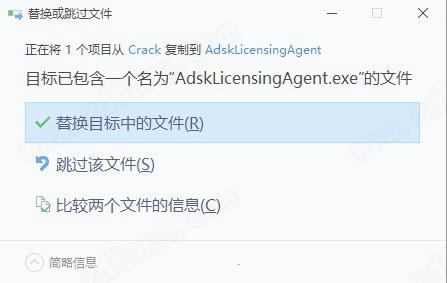 9.将AdskLicensingAgent.exe复制到默认C:\Program Files (x86)\Common Files\Autodesk Shared\AdskLicensing\11.0.0.4854\AdskLicensingAgent\AdskLicensingAgent.exe,点击替换目标中的文件