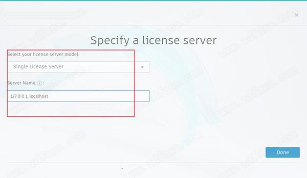 15.选择“单个许可证服务器(Single license server)”输入“127.0.0.1, localhost”或安装了flexlm守护程序的位置(语法可以是port@server)。