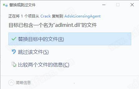 10.将adlmint.dll复制到默认C:\Program Files (x86)\Common Files\Autodesk Shared\AdskLicensing\11.0.0.4854\AdskLicensingAgent\adlmint.dll ,点击替换目标中的文件