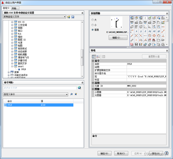 (command "fillet" "r" r3)(command "fillet" line5 line1)(defun bulb() (setvar "cmdecho" 0) (dcl_show) (setvar "cmdecho" 1))(defun *error* (msg);不可修改(即*error*和msg都是LISP预留值,使用时不可修改) (close f1) (print "OK") )<span class="ne-text">(new_dialog "box" (load_dialog "E:/ACAD_WORK/t412.dcl"))</span><span class="ne-text">(new_dialog "box" (load_dialog "E:/ACAD_WORK/t412.dcl"))</span>bulb:dialog{ label="球扁钢"; :row { :image { key = "ima"; width = 20; aspect_ratio = 0.618; } :boxed_column { label = "参数"; :edit_box {label = "h"; key = "h";} :edit_box {label = "tw"; key = "tw";} :edit_box {label = "bf"; key = "bf";} :edit_box {label = "r1"; key = "r1";} :edit_box {label = "r2"; key = "r2";} :edit_box {label = "r3"; key = "r3";} :edit_box {label = "r4"; key = "r4";} } } :concatenation { :text_part {label = "说明";} :text_part {label = " ";} } :concatenation { :text_part {label = "请完整输入各个参数后按命令提示选择一个球扁钢左下角点";} } ok_cancel;} (defun dcl_show() (setq dcl_id (load_dialog "E:/ACAD_WORK/LISP_WORK/BULB/bulb.dcl"));加载DCL文件,要使用完整路径,相对路径找不到 (new_dialog "bulb" dcl_id);使用DCL文件生成一个对话框对象 (show_image "ima" "E:/ACAD_WORK/LISP_WORK/BULB/bulb_test.sld");进行对话框的初始化以及事件注册(action_tile函数)工作 (action_tile "accept" "(ok_dia) (done_dialog 1)") (setq dd (start_dialog));开始对话框消息循环并捕获消息(一般是点击OK,此时start_dialog函数返回1) (if (= dd 1) (draw_bulb));根据捕获的消息进行事件处理 )(defun ok_dia() (setq h (atof (get_tile "h")));get_tile函数用于取控件的value属性,对于edit_box就是其中填写的值 (setq tw (atof (get_tile "tw"))))(defun show_image(key sld) (setq x (dimx_tile key));取image控件框的尺寸 (setq y (dimy_tile key)) (start_image key);开始处理image控件 (fill_image 0 0 x y 3);填充背景 (slide_image 0 0 x y sld);填充图片 (end_image))***MENUGROUP=MYLISP ;菜单组名称,在界面上无显示,上述的等号右边可任意修改;***POP1 ;***POP1的意思为第一组弹出菜单,POP后的数字可以是1-9[LISP] ;菜单条中一下拉菜单名称,方括号内可任意修改[BULB] ^C^P (load "E:/ACAD_WORK/LISP_WORK/BULB/bulb.LSP") (bulb) ;LISP菜单中的一个菜单项名称,其后为ACAD宏命令,^C意为取消当前操作,^P意为执行后续函数,后续的为LISP函数,用于加载指定的LSP文件并执行其中的函数;;最后必须有一个空行