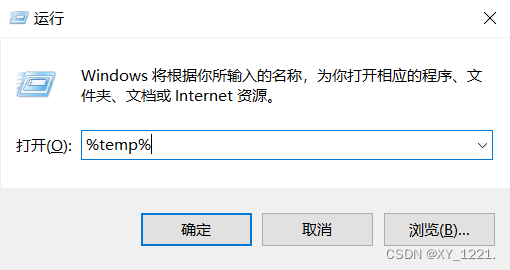 (1)按下【Window + R】打开运行,输入%temp%,点击【确定】;