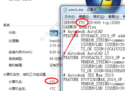 2、同样在“MAGNiTUDE”文件夹中找到“adesk.dat”文件,用记事本打开,将文"this_host"修改为自己的主机名,保存到C盘autodesk文件夹。