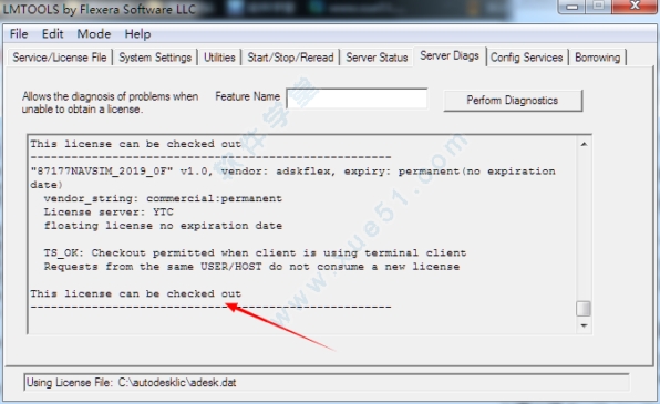 出现提示This license can be checked out,说明可用。(这步可忽略)