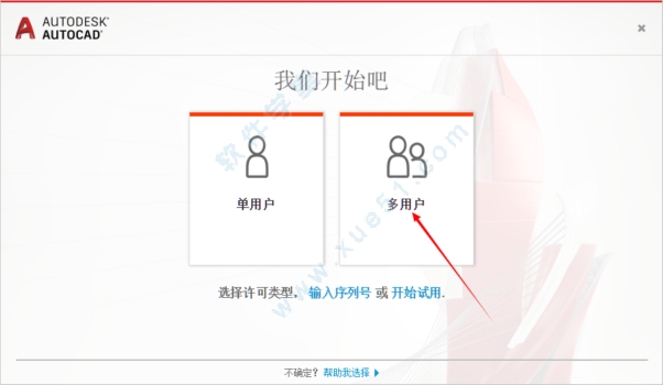 11、运行autocad2019桌面快捷方式,选择多用户启动