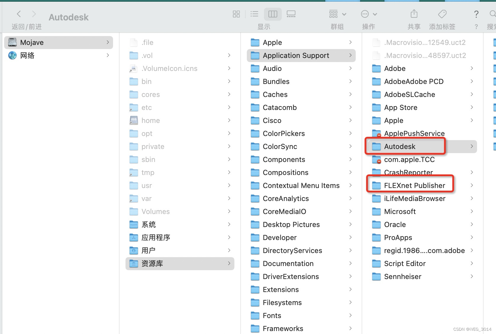 四、删除系统资源库中Application Support下的AutoDesk和 FLEXnet Publisher