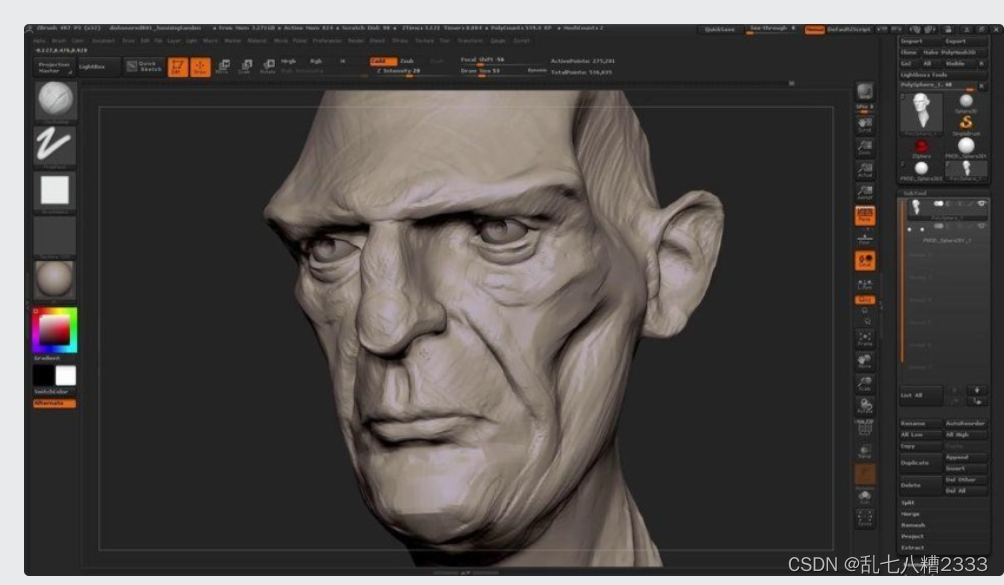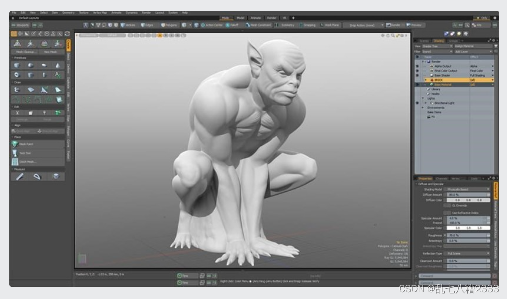ZBrush 是一个最适合创建有机形状的雕刻和建模程序,尽管最近的更新逐渐提高了它的硬表面功能。ZBrush 也非常适合其他用途,例如该程序可用于创建 UV 贴图和绘制纹理。想要在 3D 打印机上打印各种形状的艺术家最常使用所有这些可能性。
