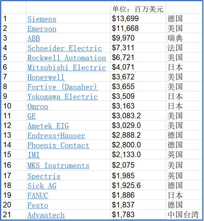 自动化领域没有冷门故事。领先供应商的主导地位,始终稳如磐石。西门子、ABB、艾默生、施耐德电气、霍尼韦尔、罗克韦尔自动化和横河等传统大型供应商继续在自动化领域占据主导地位,稳如泰山,甚至连动摇的迹象都没有。